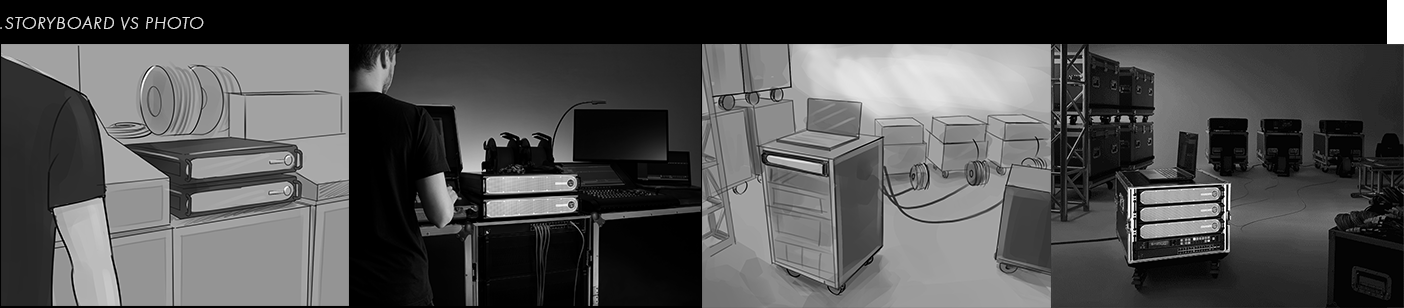 When taking product photos its important to build the lighting setup bit by bit so you can see how the light is interacting with the product. In this way, we wanted also to pay special attention to the product and its key function. The styling was based on the client's CI. Our aim was to explain product capabilities and how actually you can make use of it. It was necessary to show that you need to have display and production type computer, what can be connected to the product (projectors, lights, sound, etc), how to enter to them (playback with production but also cameras, external sources, control systems, etc.). It was important to show how to use this type of device in the environment of the target group.